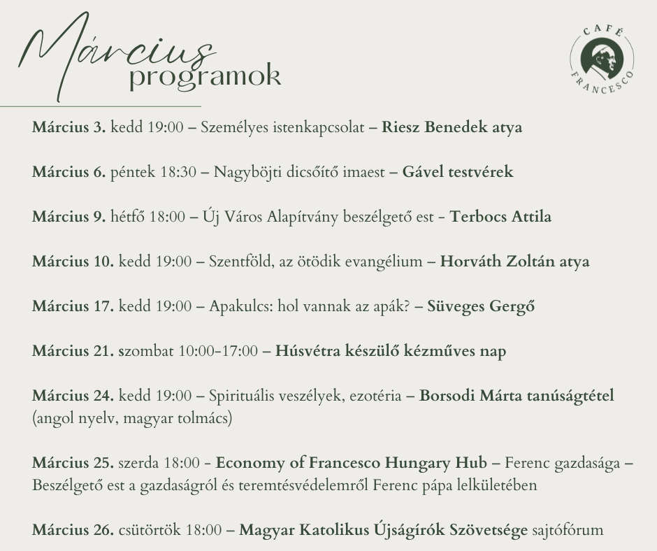 kávézót az 5. kerületben, a Bencés rend által fenntartott Ward Mária Iskola üzlethelyiségében, Café Francesco néven, amely találkozási helyéül szolgál keresztény, főként regnumi, cserkész, plébániai fiataloknak, illetve helyet ad hittel, egyházzal kapcsolatos beszélgetéseknek.